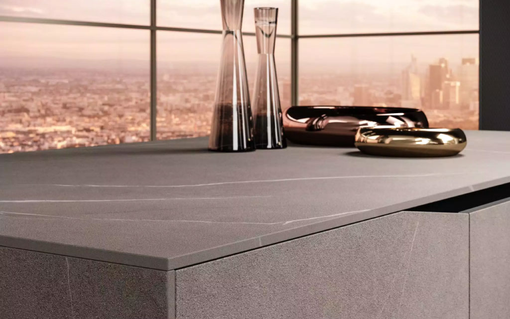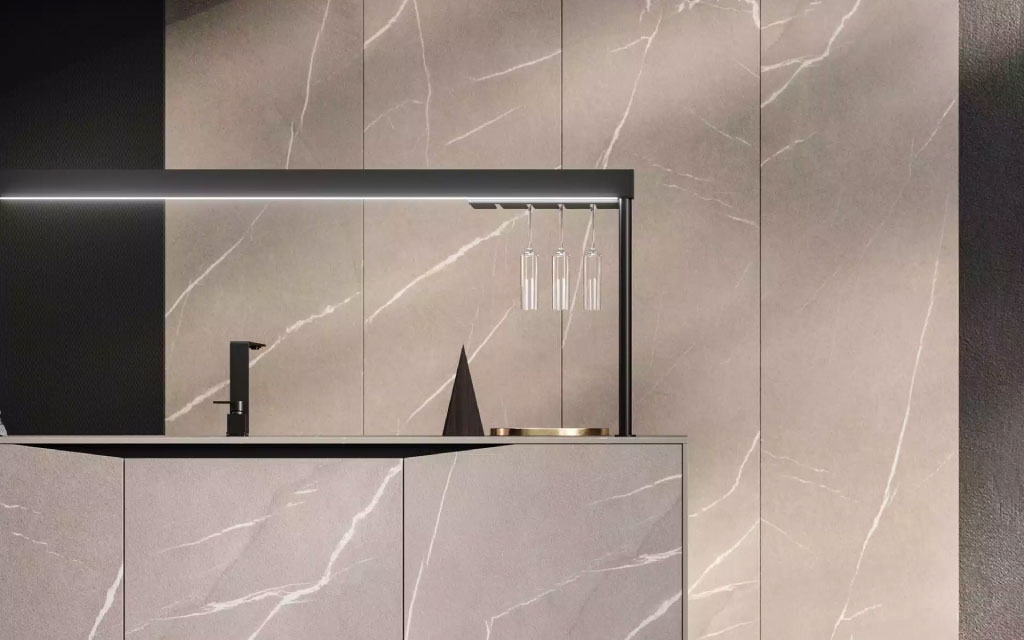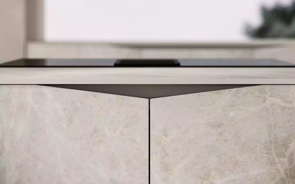 Gli elementi naturali rappresentati dai 4 materiali principali del progetto: la pietra (ceramica), il vetro, l’alluminio e il legno. Grazie agli elementi, è possibile creare monoliti, impreziositi da materiali unici e da una firma distintiva. L’essenza dell’acqua che modella la pietra, delle crepe nella roccia, della lama di luce nel buio.